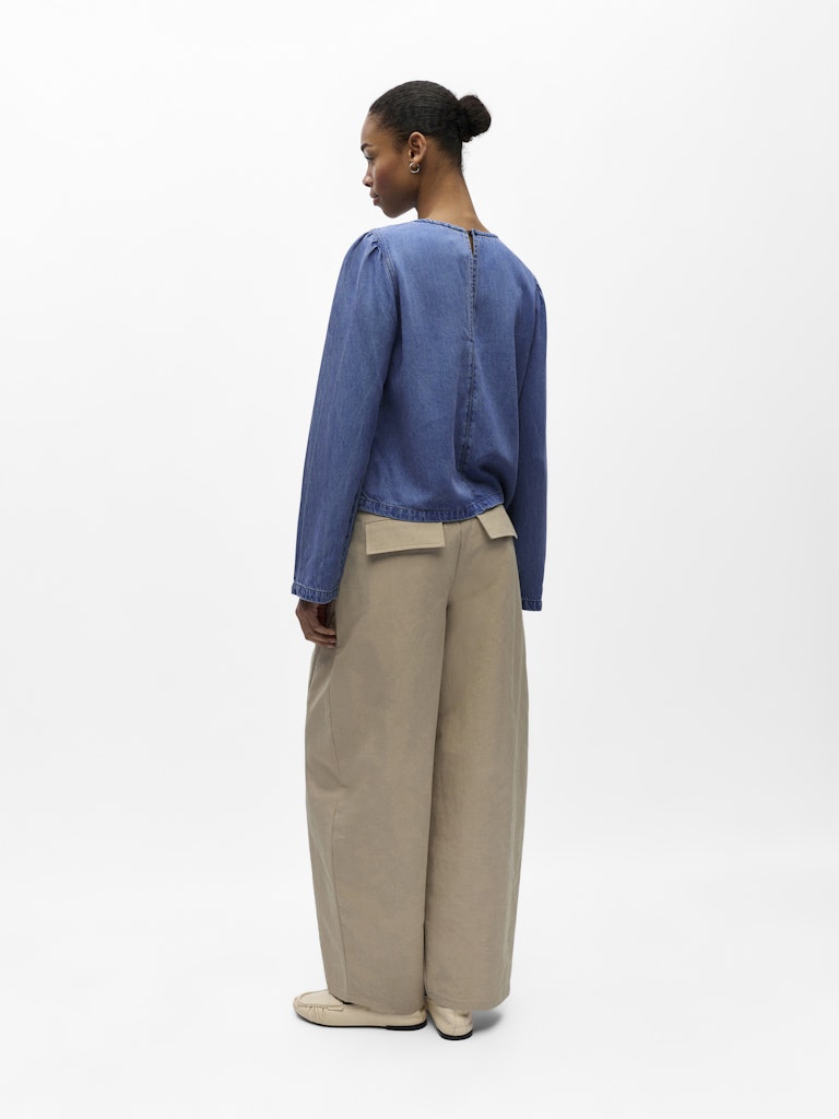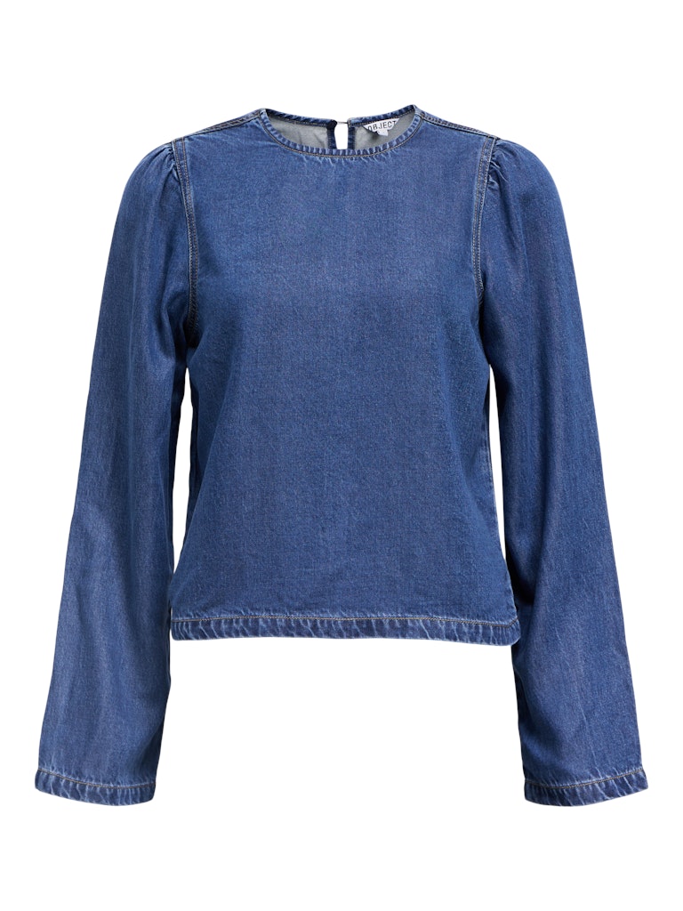 Långärmad topp i mjukt jeanstyg med liten puffärm från OBJECT - 100% Lyocell TENCEL™