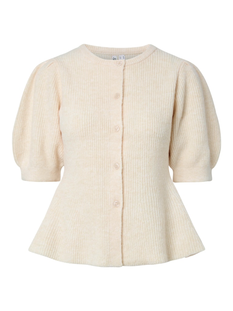 Stickad kortärmad kofta som är svagt klockad nedtill från PIECES - 50% Polyester - Recycled, 40% Polyester, 5% Elastane, 5% Wool